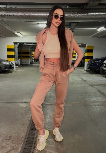 Wygodne, dresowe spodnie ze 100% bawełny, z delikatnym meszkiem od wewnątrz. Model o dość dopasowanym kroju, wykonany z gumą w pasie i dwoma kieszeniami po bokach. Z tyłu na kieszonce logowanie.
