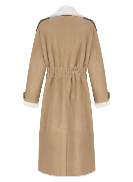 Luksusowy długi kożuch w kolorze beżowym, wykonany z najwyższej jakości włoskiej skóry merynosa – wyjątkowo miękkiej, delikatnej i sprowadzanej specjalnie z Włoch. Dzięki starannemu doborowi materiałów, kożuch gwarantuje nie tylko doskonały komfort noszenia, ale także trwałość i niepowtarzalny wygląd. To produkt najwyższej klasy, stworzony dla najbardziej wymagających klientów.