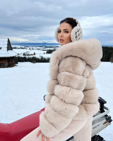 Luksusowe beżowe futerko z kapturem, wykonane z najwyższej jakości skór lisów fińskich pochodzących z renomowanego domu aukcyjnego Saga Furs. Nasze skóry to gwarancja wyjątkowej klasy, co widać w każdym detalu – od perfekcyjnego wykonania po niepowtarzalną miękkość i elegancję.