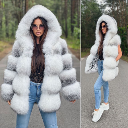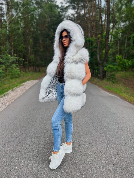 Luksusowe futerko z kapturem wykonane z niezwykle rzadkiej odmiany fińskich lisów Golden Island Shadow, certyfikowanych przez renomowany dom aukcyjny Saga Furs. To wyjątkowe futro wyróżnia się nie tylko swoją jakością, ale i subtelnym, eleganckim wyglądem, który doskonale łączy luksus z funkcjonalnością.