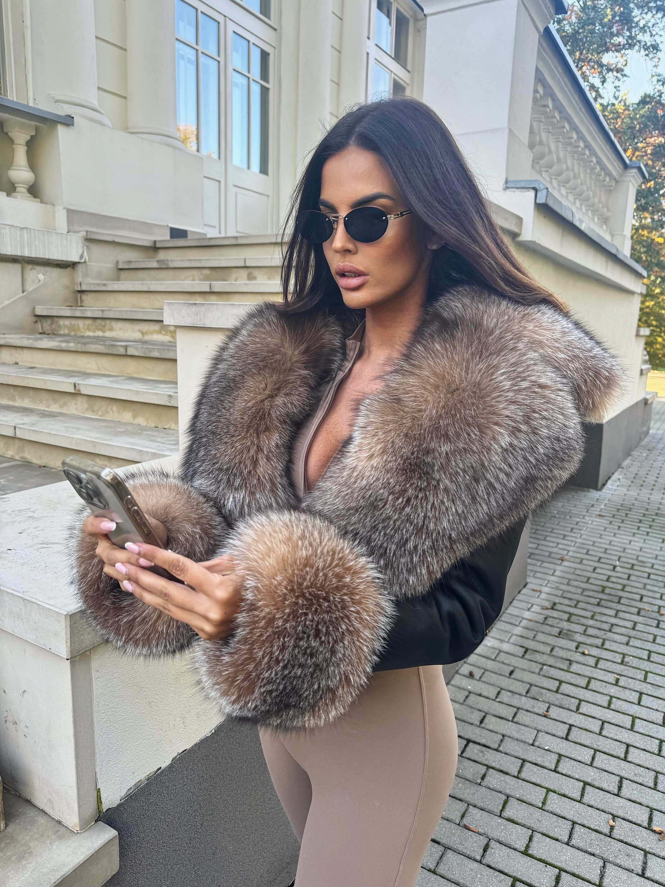Ekskluzywny krótki kożuszek wykonany z najwyższej jakości włoskiej skóry jagnięcej w eleganckim czarnym kolorze. Skóra jest wyjątkowo miękka i delikatna, co gwarantuje komfort noszenia i luksusowy wygląd. Model wyróżnia się bogatym obszyciem z lisa kryształowego – zarówno na efektownym kołnierzu, jak i przy mankietach, co dodaje całości szyku i prestiżu.